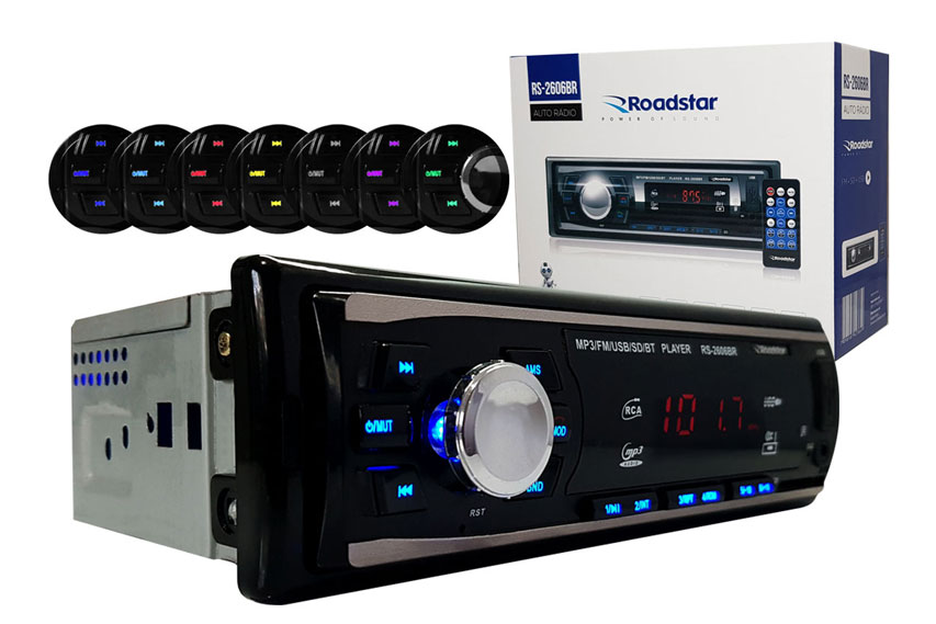 O auto rádio RS-2606BR possui um painel com 7 cores que irão combinar perfeitamente com o painel de seu carro deixando com um visual moderno e muito elegante. Curta suas músicas prediletas através de sua Rádio FM favorita, ou através do reprodutor de MP3 com troca de pastas ou até mesmo através da conexão Bluetooth.